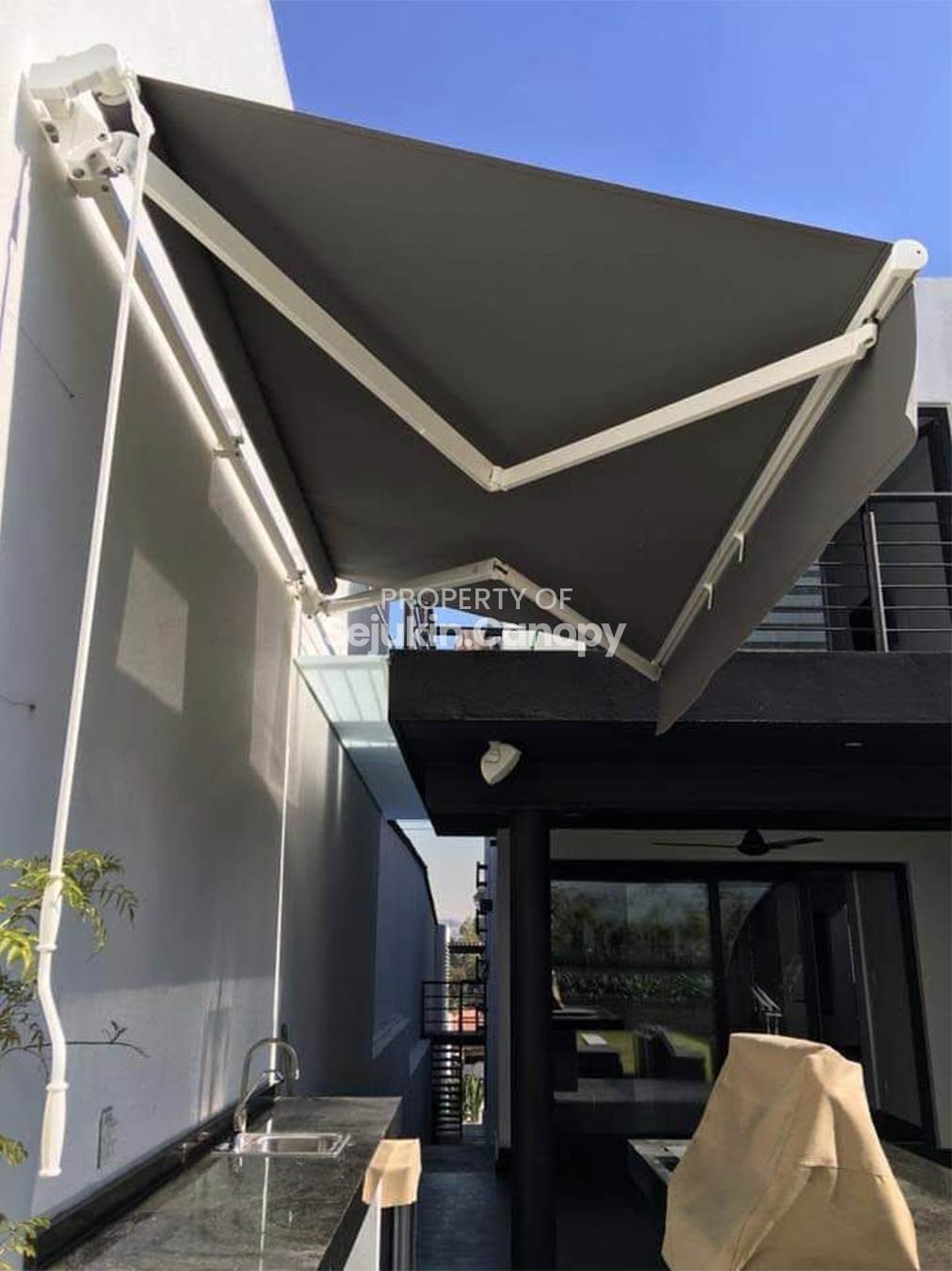 Awning fleksibel yang bisa dibuka-tutup sesuai kebutuhan. Ideal untuk café, restoran, dan teras rumah yang ingin ruang teduh tetapi tetap bisa dibuka pada waktu tertentu.